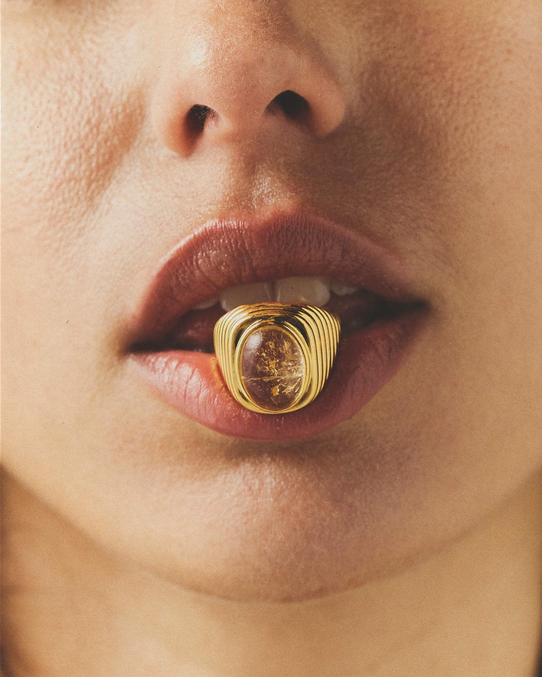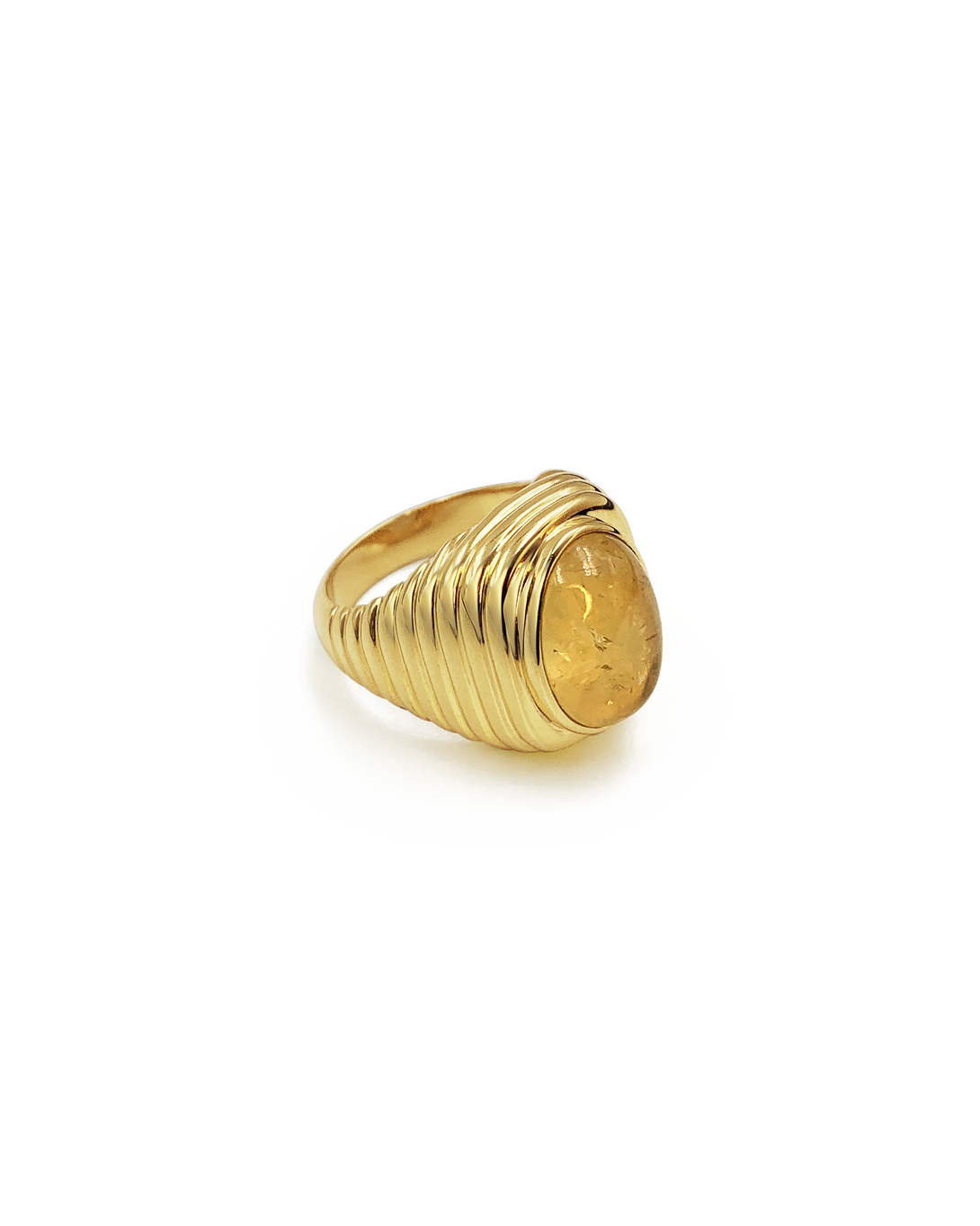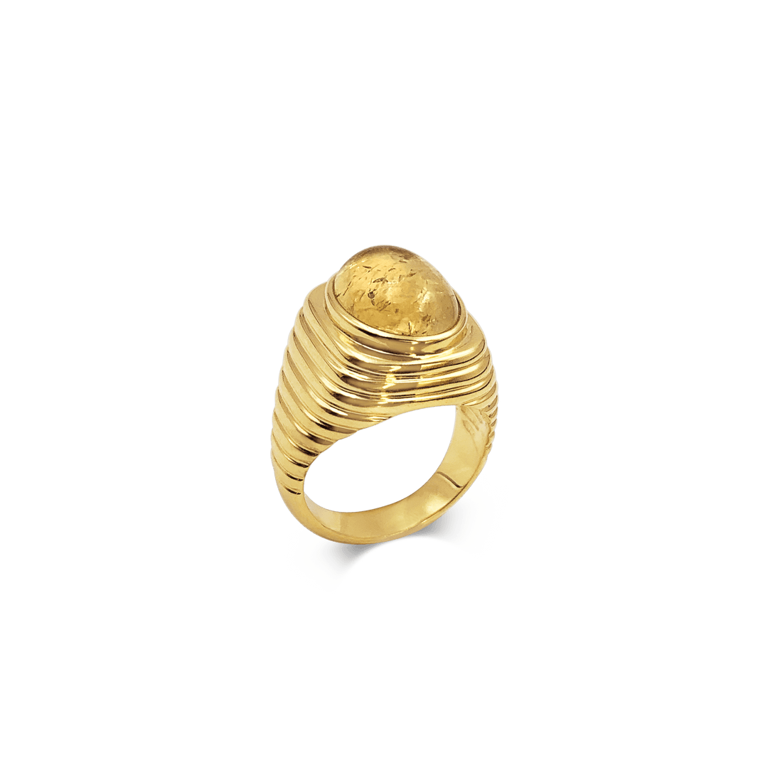 Our 18kt gold-plated Aida ring embodies considered elegance, cast with a ribbed band and crowned with a polished cabochon of citrine.