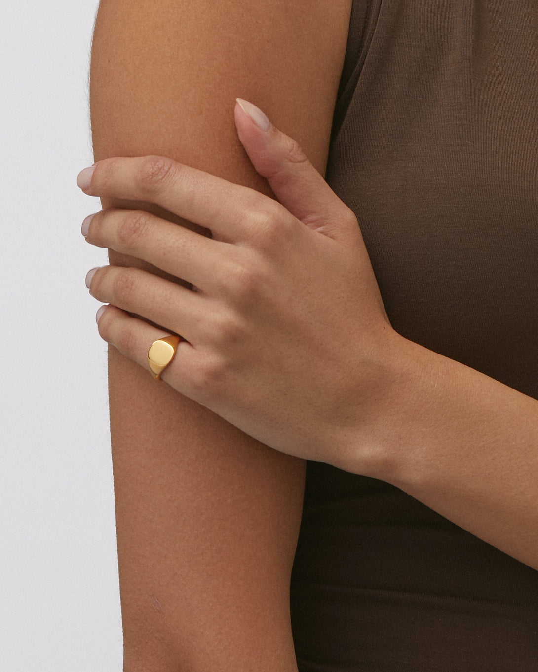 Is there anything more classic than a signet ring? We don’t think so. Our classic Baby Eddie signet ring, cut from 18ct yellow gold-plated brass and polished to perfection, has been refined.