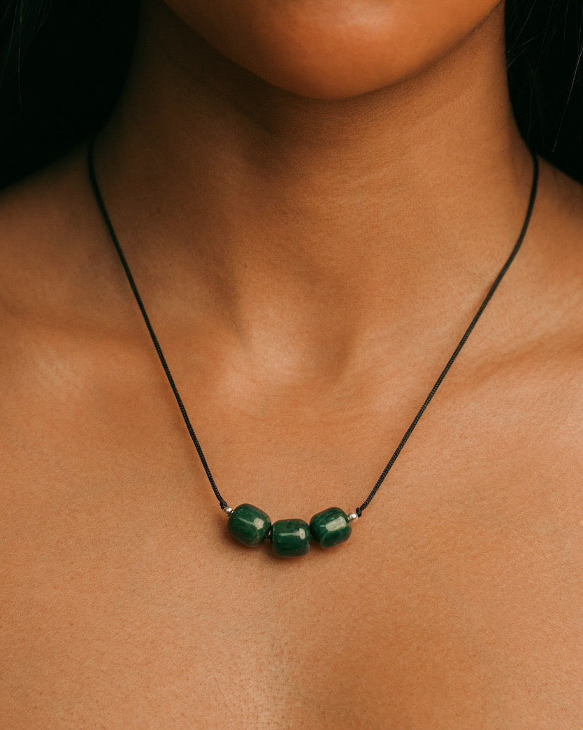 There is a unique kind of beauty to the simplicity of the Dale Necklace, made from a thin rope cord and three one-of-a-kind Jade stone beads. Designed with an adjustable length, making it an easy everyday piece that will become an essential part of your effortless summer look.