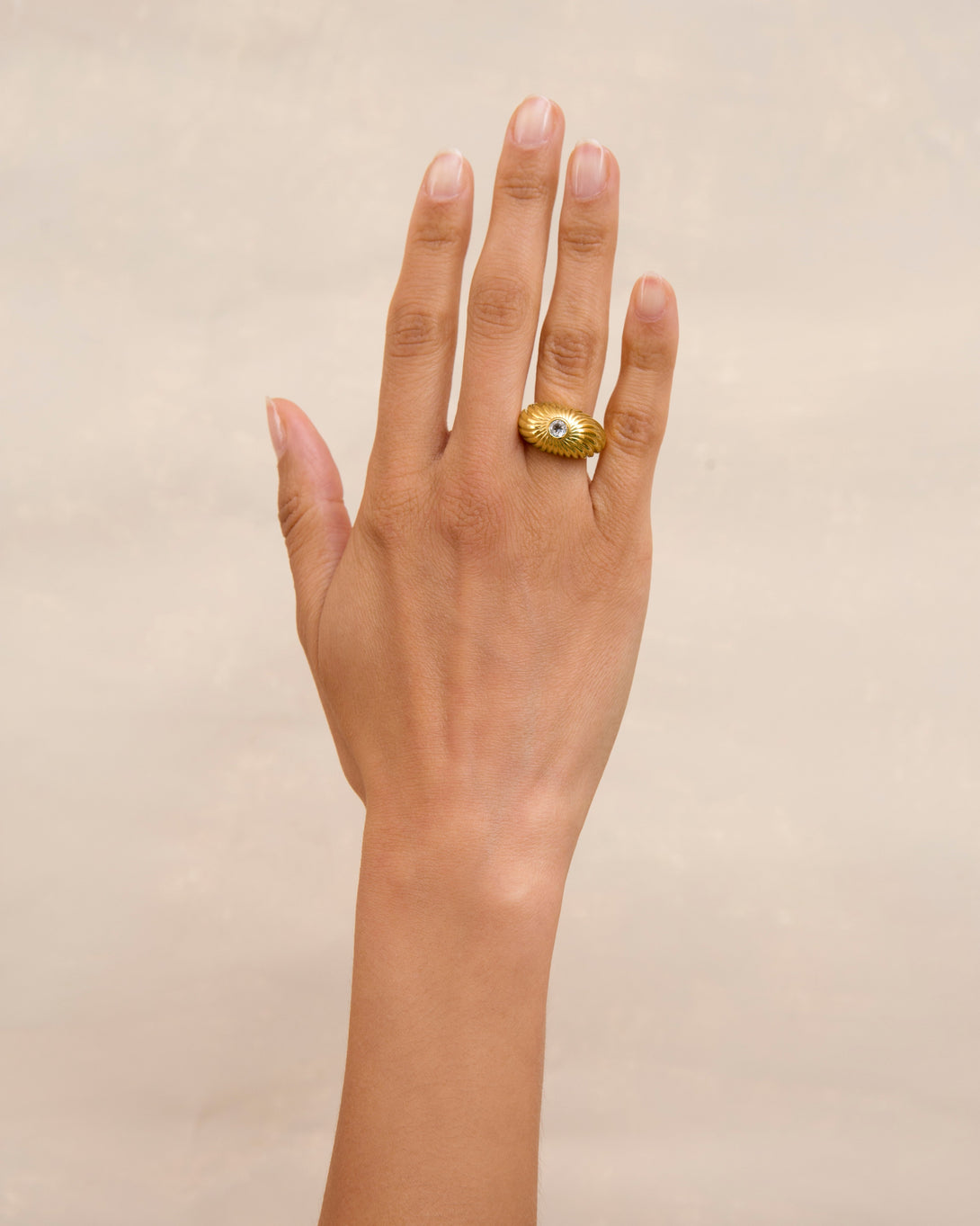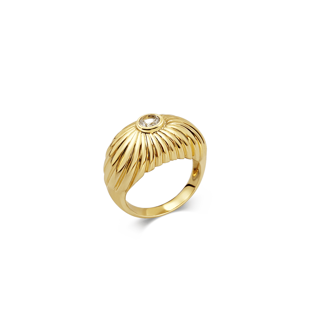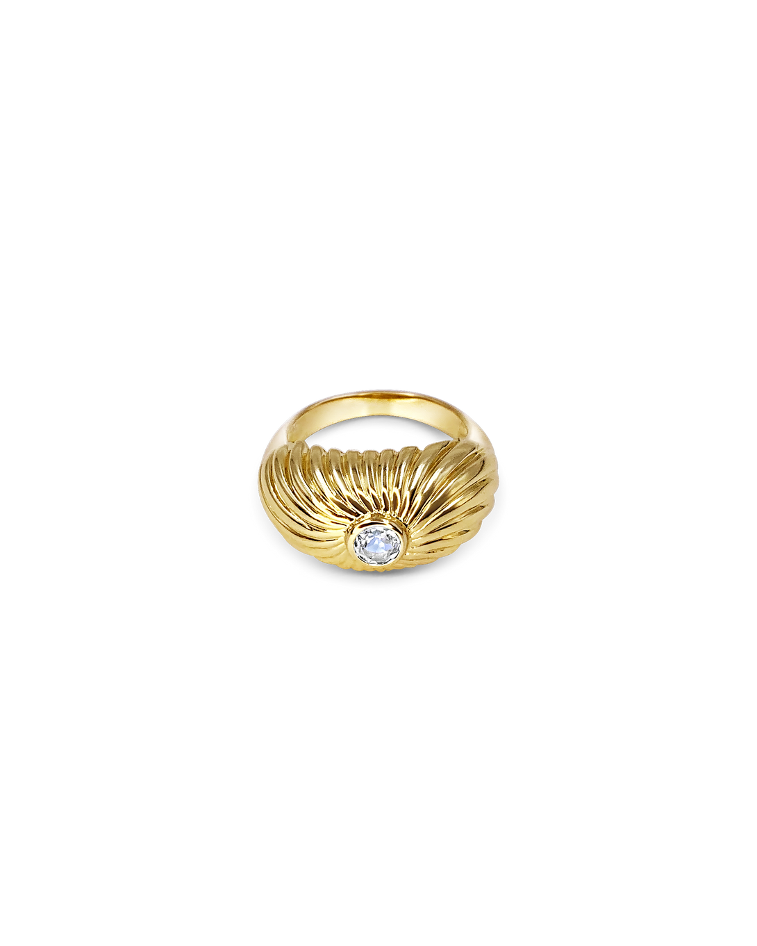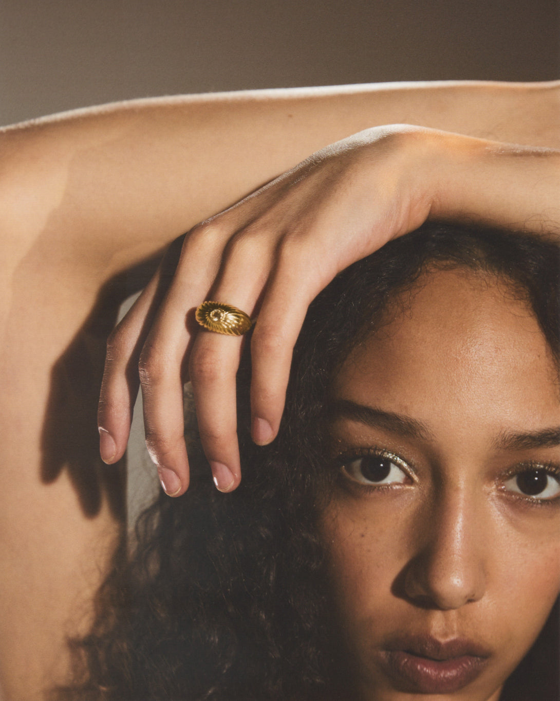 A textured surface and crystal detail make our Gisele ring a unique beauty. Named after a supermodel icon, this ring is subtle and yet striking.