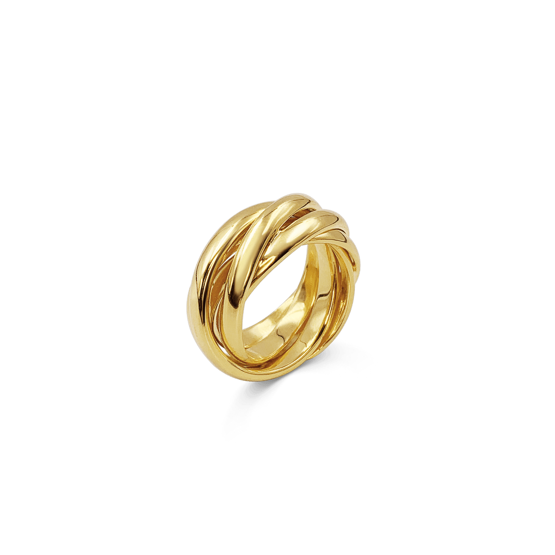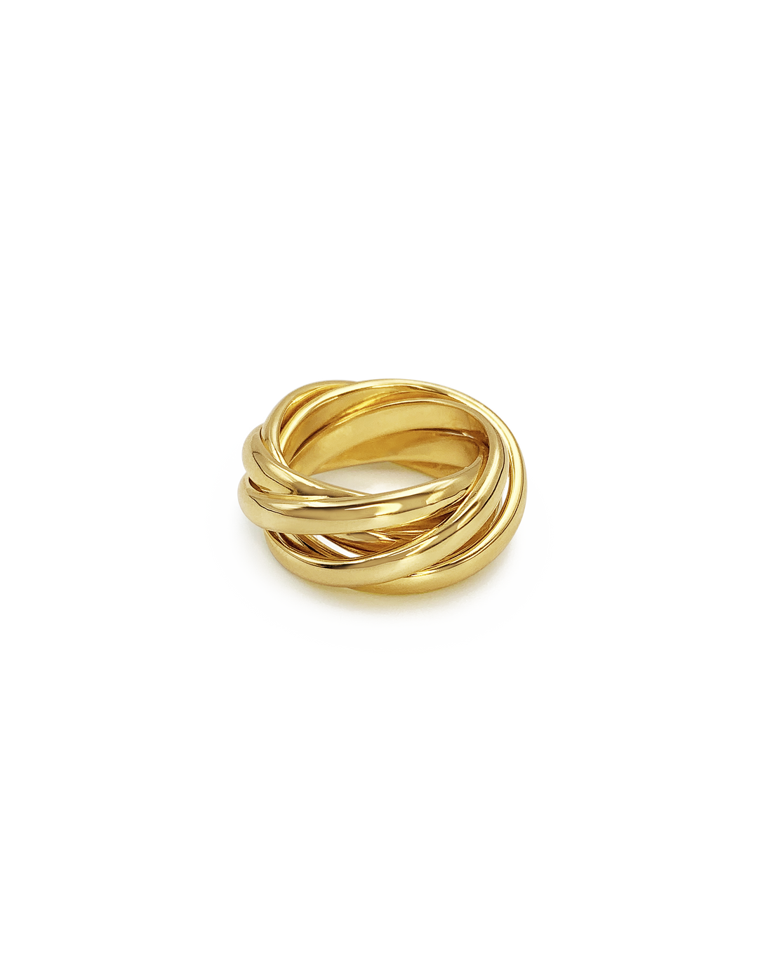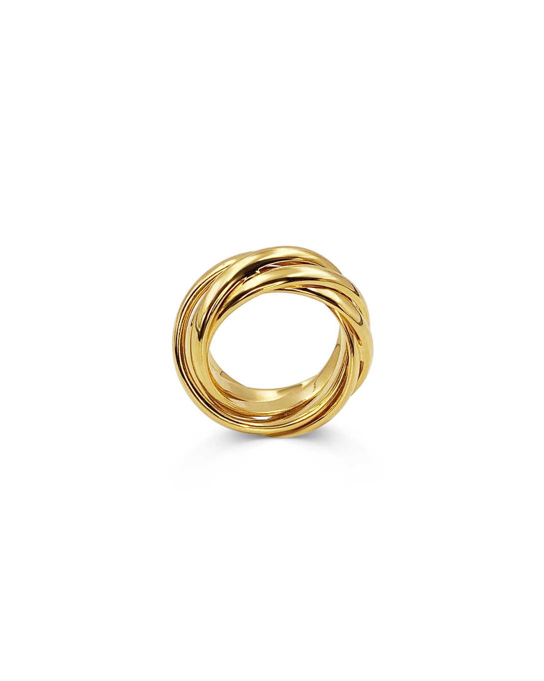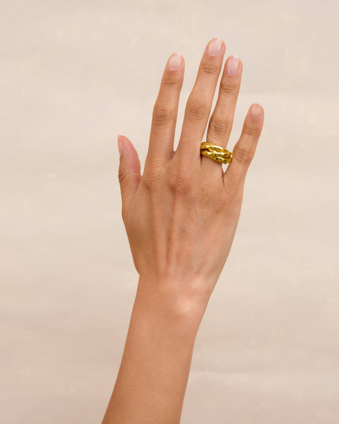 The twisted, interlocking design of our 18ct gold-plated Lucia ring is inspired by traditional Russian wedding bands that symbolise the unity of two partners. Timeless and polished to perfection.