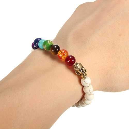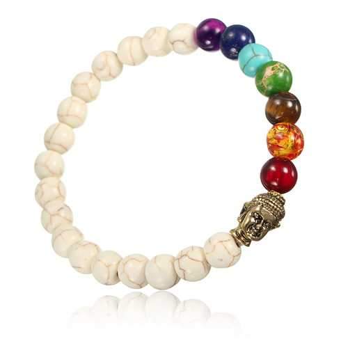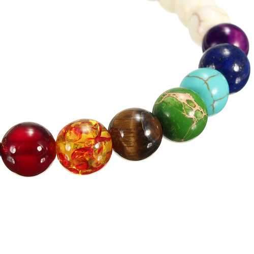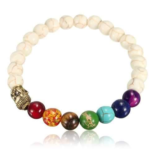 White Stone Colorful Beads Prayer Elastic Bracelet